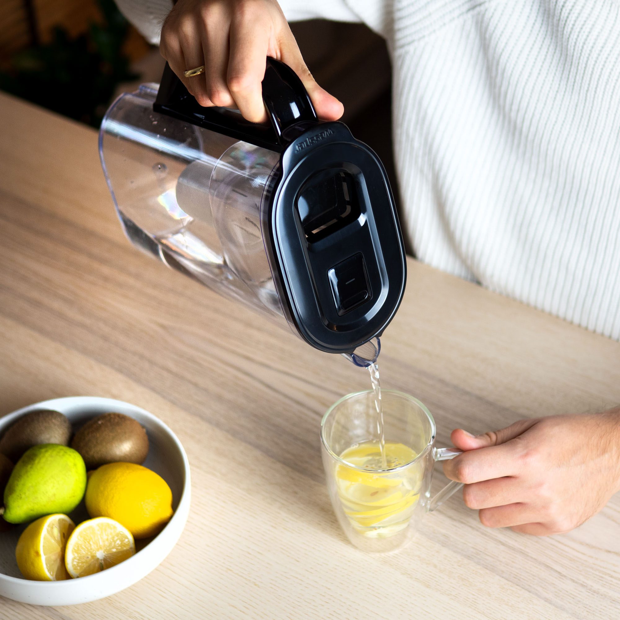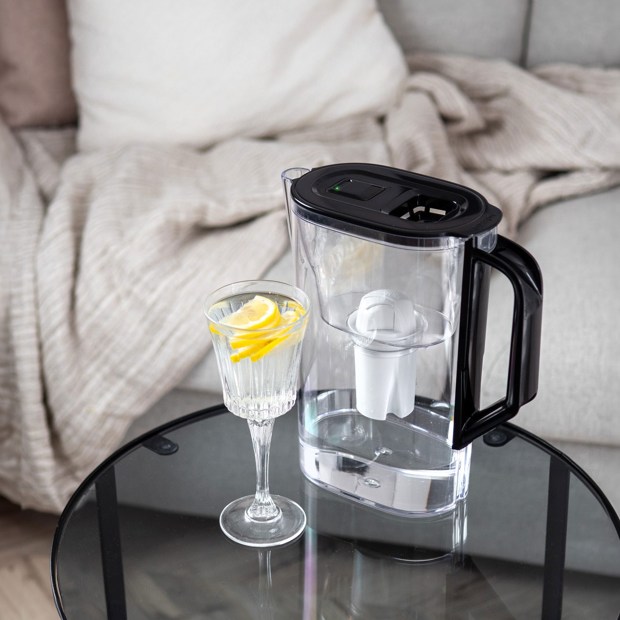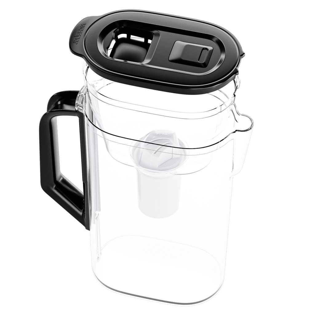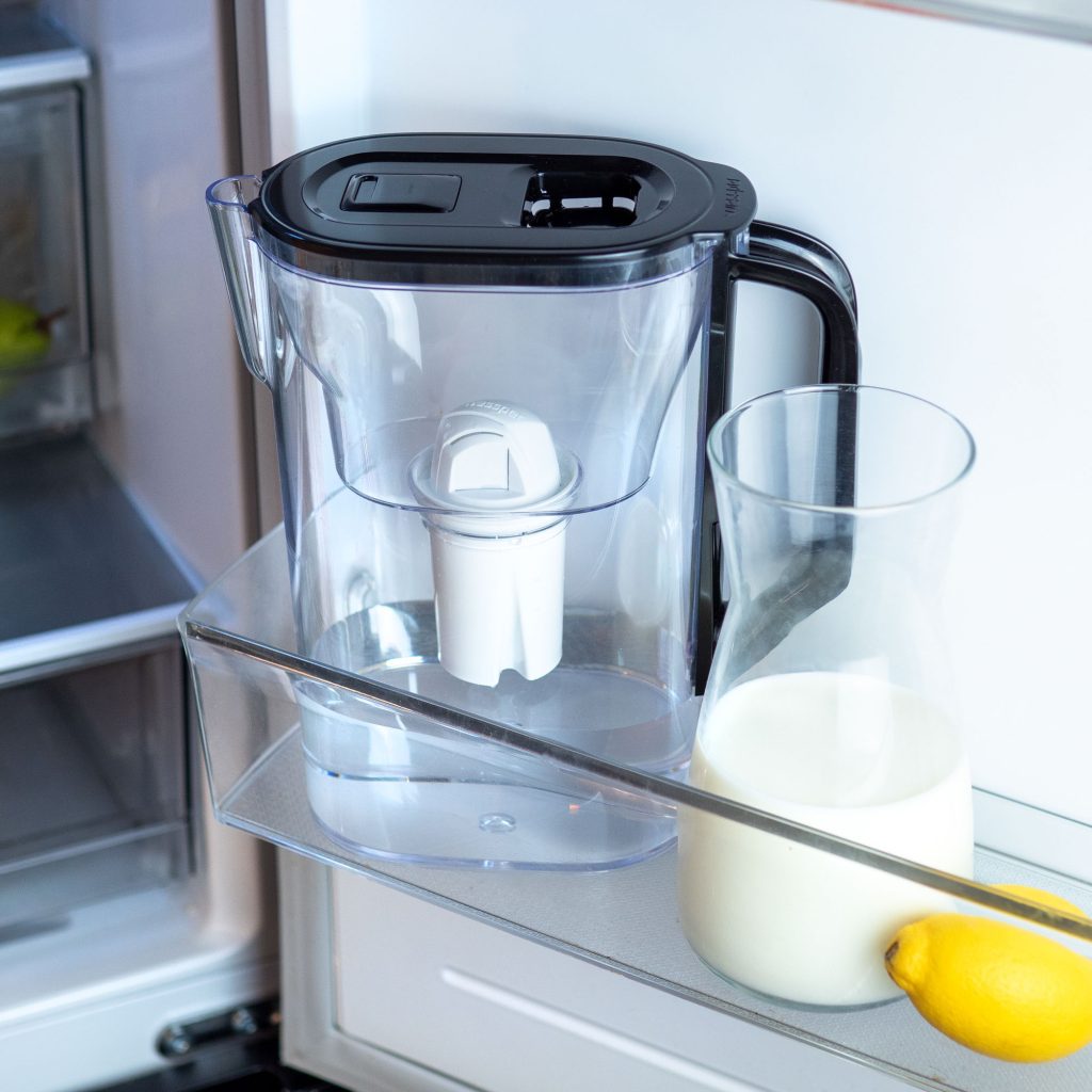 Smukła konstrukcja dzbanka umożliwia przechowywanie go w drzwiach każdej lodówki.