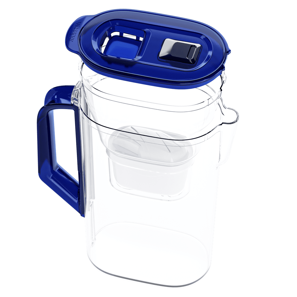 Smukła konstrukcja dzbanka umożliwia przechowywanie go w drzwiach każdej lodówki.